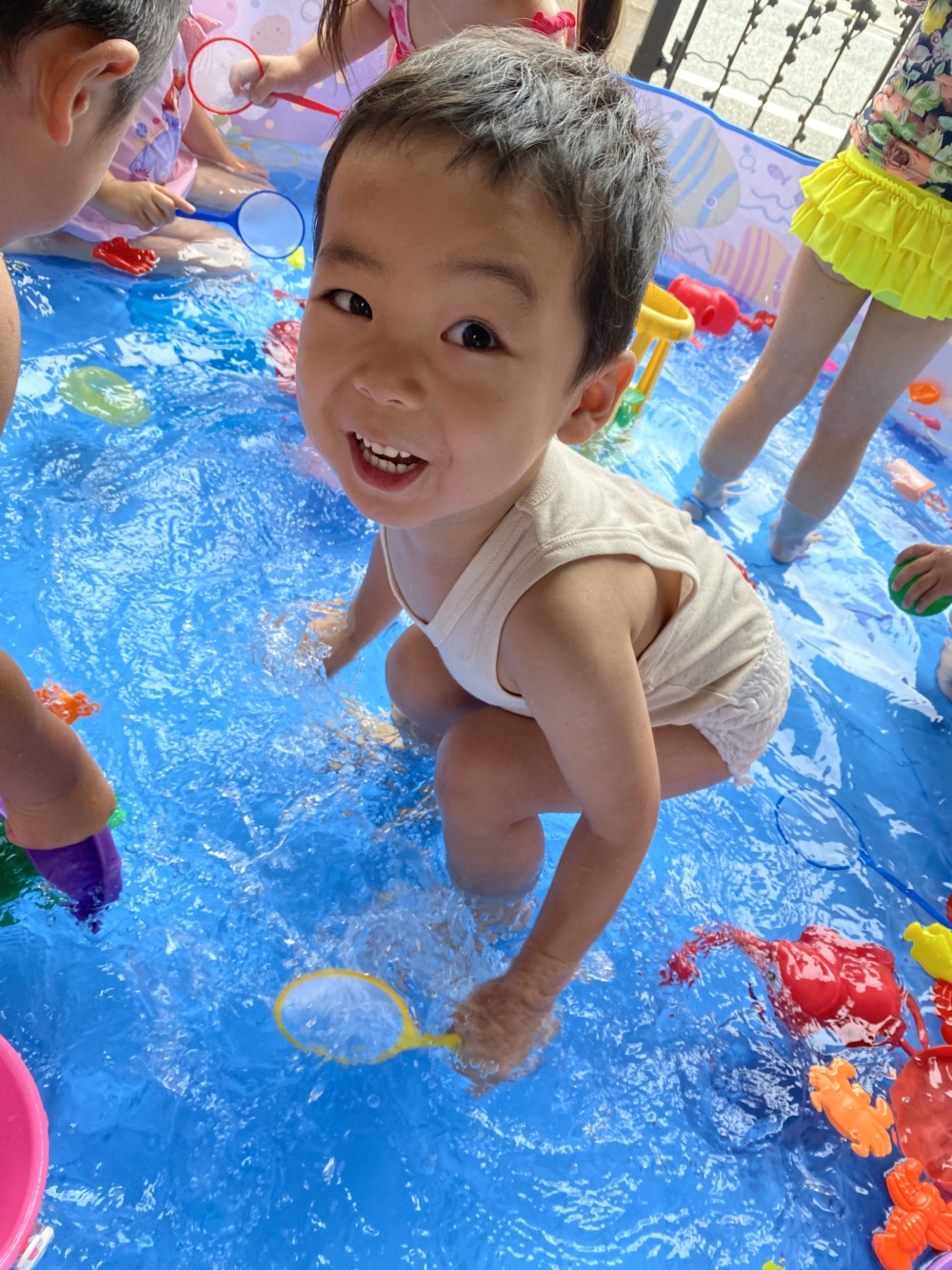 暑い日は水遊びをするので、水着とタオルと着替えを持ってきてください🩵