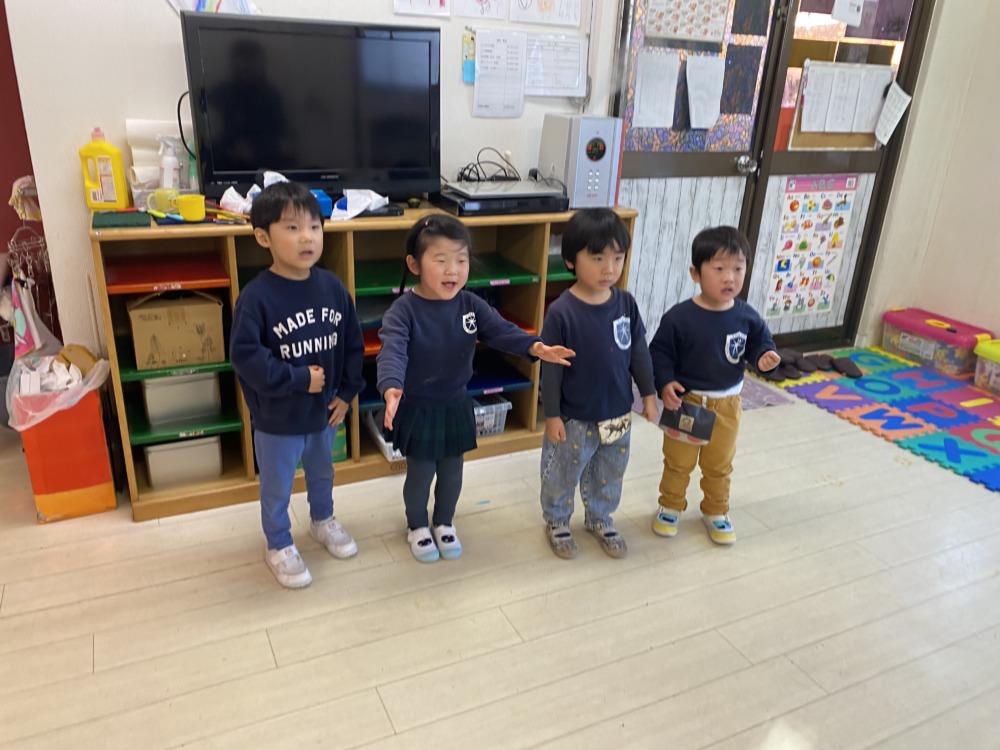 歌の練習では、手話が始まりました。あやこ先生の真似をしながらできるところは一生懸命頑張っているAppleちゃんでした。